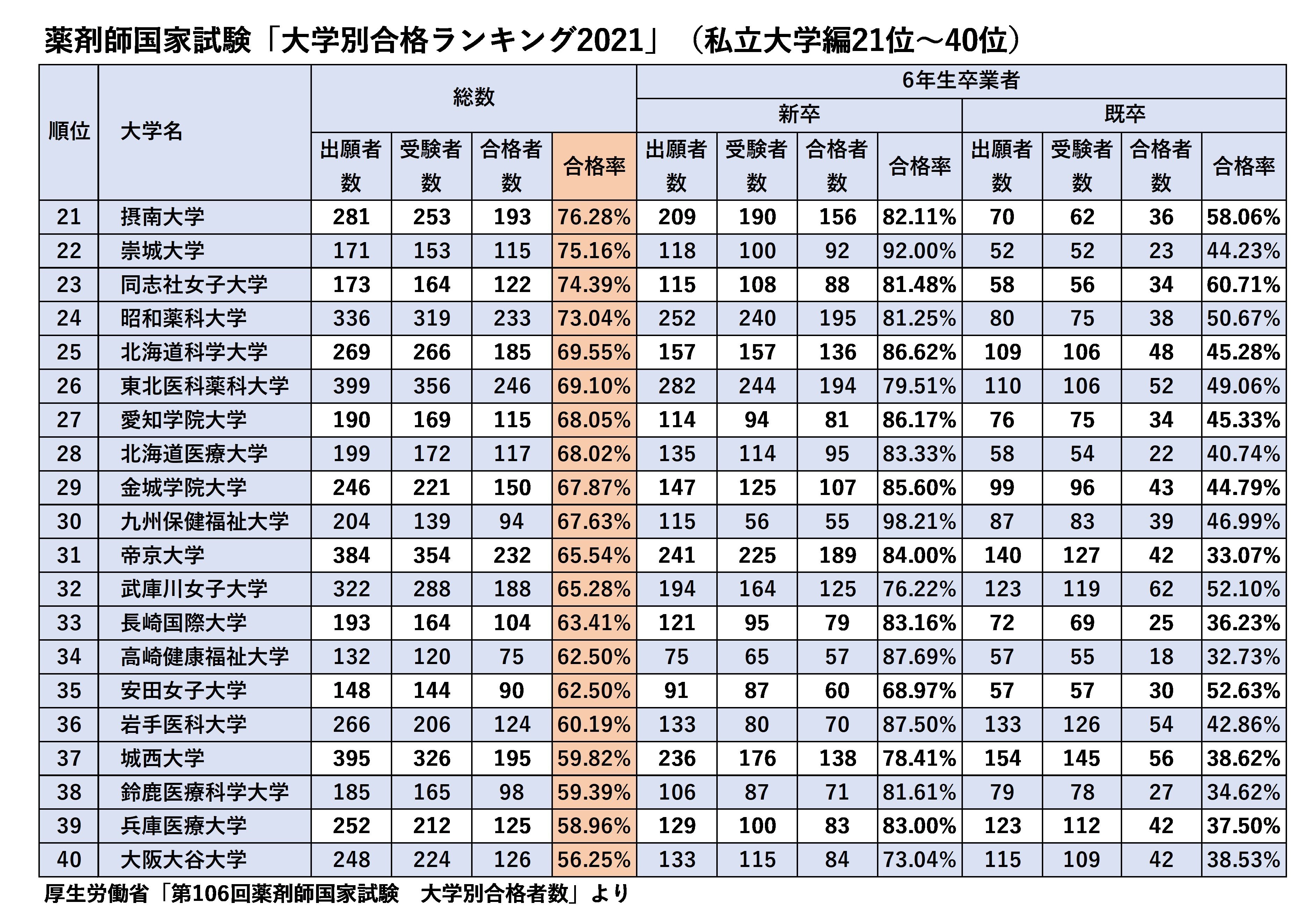 次ページ薬剤師国家試験「大学別合格ランキング2021」(私立大学41~56位)