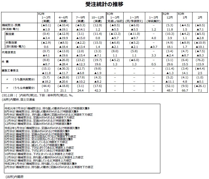 ※当レポートの閲覧に当たっては【ご注意】をご参照ください(見当たらない場合は関連記事『2021年2月分「機械受注」のデータ』を参照)。
