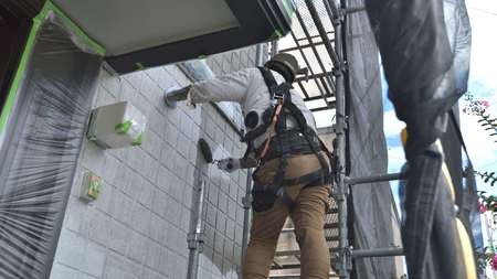 工事は、まず足場の組み立てから行います。足場工事というのは2つの役割を果たしています。1つ目は高いところの外壁や屋根を塗装するためです。2つ目は、塗料が近所に飛散しないためです。組み立て時と解体時はほかの工程と比べて工事の音が大きくなるため、あらかじめご近所にそのことを伝えておくとよいでしょう。