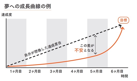 夢をつかもうと行動を始めても、実際のところ、最初の半年間は実感を得られないことのほうが多いでしょう。努力しているのに進んでいる実感がゼロ、もしくは進んだり戻ったりを繰り返す感じです。