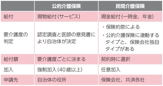 民間介護保険とは、一言で説明すると、所定の要介護状態となった場合に給付金を受けられる商品です。公的介護保険の給付は「現物給付」といってサービスなのに対し、民間介護保険では現金を受け取ることができます。