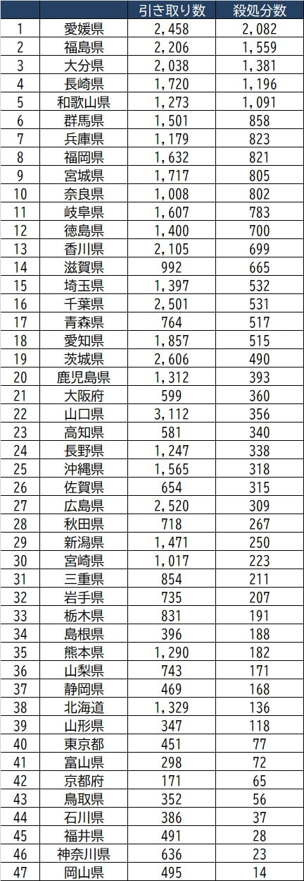 ※殺処分数には、保管中の病気等による自然死も含まれる。