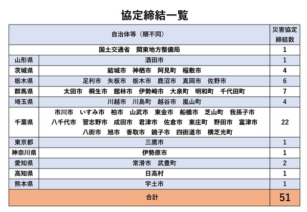 有事にレスキューホテルのすみやかな出動が行なえるよう、デベロップは地方自治体との災害協定の締結に力を注いでいます。昨年来、新型コロナウイルス対策としての出動実績が高く評価され、自治体からの問い合わせは急増。2021年9月現在、協定を締結した市町村は千葉県の28を筆頭に、全国68市町村に及びます。