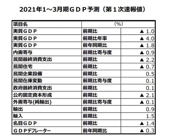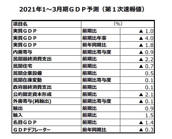 ※当レポートの閲覧に当たっては【ご注意】をご参照ください(見当たらない場合は関連記事『2021年1~3月期実質GDP(第1次速報値)予測』を参照)。