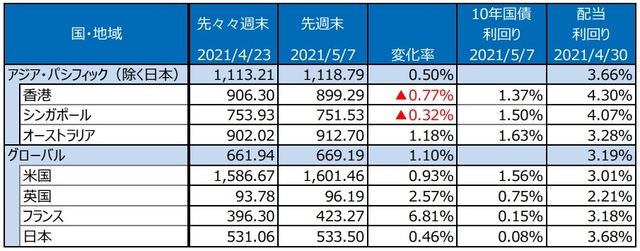 2. 先週のアジア・オセアニア株式・リート市場