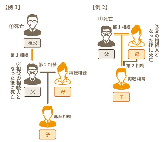 再転相続は、第1相続の相続人が相続を承認・放棄する前に死亡することで起こります。つまり、再転相続の相続人は第1相続と第2相続の両方について相続を承認するか放棄するかを判断することになります。