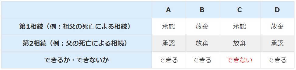 祖父の遺産相続を放棄して、父の遺産相続を承認することはできます(D)。先に祖父の遺産相続を放棄して、後から父の遺産相続を放棄することもできます(DからBに変更)。