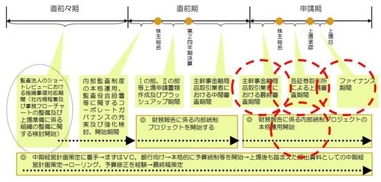 特にコーポレート・ガバナンスや内部管理体制は、運用期間が重要であり、運用期間(できれば東京証券取引所への申請までに監査役監査、内部監査、会計監査などで抽出された課題が解決または改善される見込みがあること)が不十分な場合は証券会社から東京証券取引所への申請が延期される場合もあります。