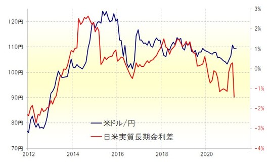 こうして日本の対前年比インフレ率が低下すると、円の実質金利は上昇する。その状況が続くなかで、為替相場もそれに追随する形で米ドル安・円高になったのが、2015年後半以降の展開でしょう。