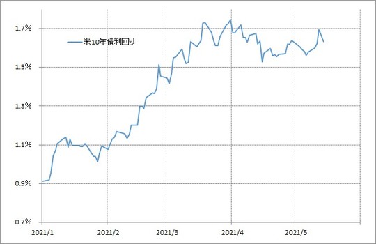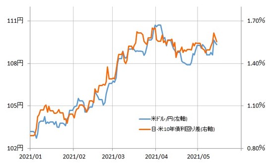米ドル/円は先週、一時109円台後半まで大きく反発しました。12日の米4月消費者物価(CPI)が予想以上の上昇となり、早期の金融緩和見直しへの警戒などから、米金利が急騰したことが要因だと考えられます(図表1参照)。