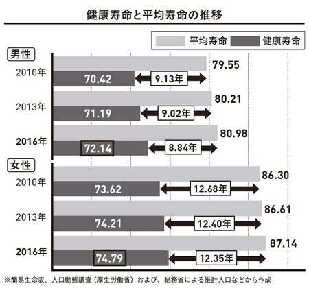 平均寿命をさらに伸ばすことよりも、健康で暮らせる期間をできるだけ長くすることが、日本の健康政策上もっとも大切なのは自明です。