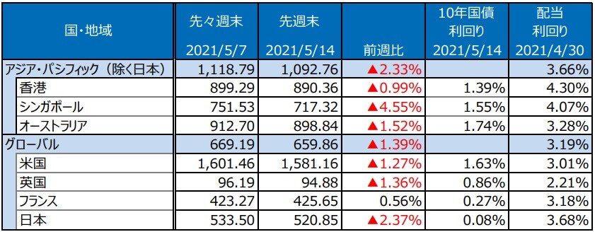 2021年5月13日 アジア・オセアニアのリート市場は続伸