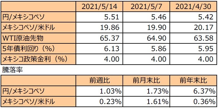 (注2)円/メキシコペソと円/米ドルの単位は円、メキシコペソ/米ドルの単位はメキシコペソ。