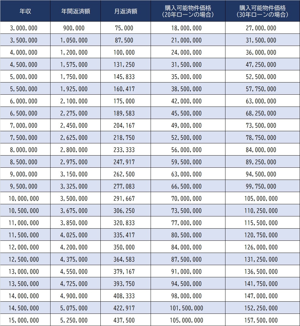年収300万~1500万円…住宅ローン借入可能金額は?