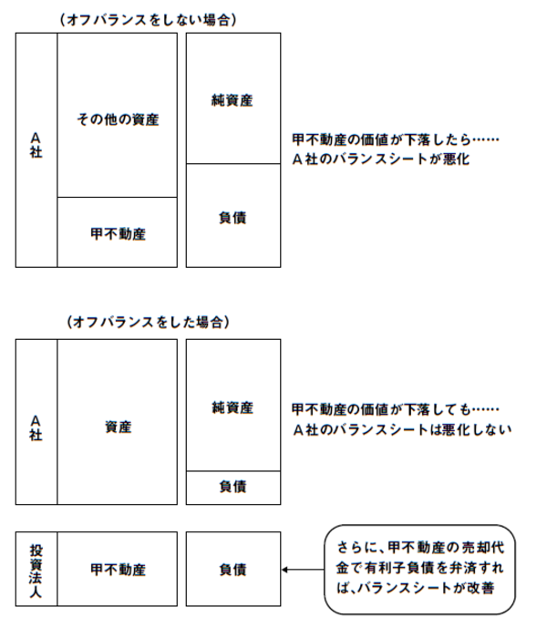 ちなみに、自社保有の不動産を私募リートに組み入れる場合、企業はオフバランスの効果を享受することが期待できます。「オフバランス」とは、事業で活用している資産・負債を、貸借対照表(バランスシート)に計上されないよう切り離すことです。