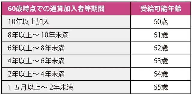 なお、加入期間によって引き出し年齢も変わってくるので、注意してください(図表参照)。