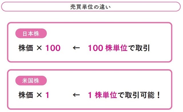 日本株と違うのが「売買単位」「ティッカーシンボル」