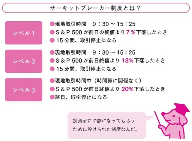 NYSE(ニューヨーク証券取引所)をはじめ各証券取引所に適用される制度で、下記のような状況になったときに発動します。
