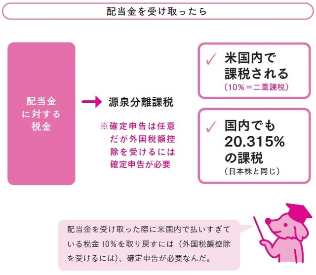 一方、配当金に対してはどうでしょうか。こちらは支払われた配当金に対して、日米で二重課税になります。