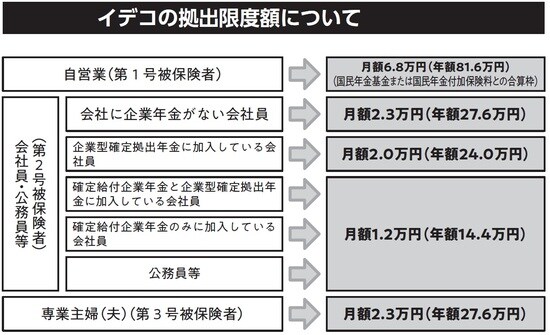 イデコの掛金は、国民年金の種別や職業別年金制度の加入状況によって、上限額が決められています。