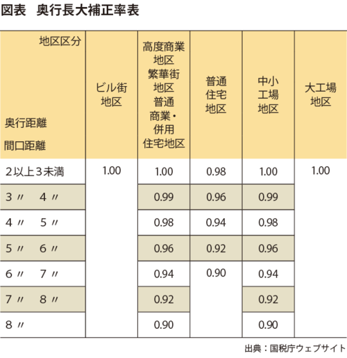 ⑵ 奥行が長大な宅地 付表7「奥行長大補正率表」