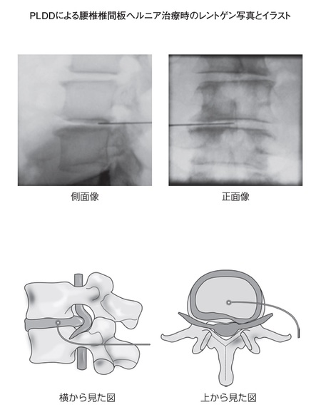 レーザーを用いた最先端の方法です。レーザーによる椎間板ヘルニアの治療は「PLDD(Percutaneous Laser Disc Decompression)」と呼ばれ、日本語では「経皮的レーザー椎間板(髄核)減圧術」といいます。
