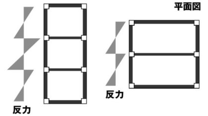 長方形は間口が狭いので反力が掛かるため、梁だったり柱の高さや太さなどで鉄筋の使用量が増える。正方形は力が均等に掛かるため柱や梁はだいたい同じ大きさになる。