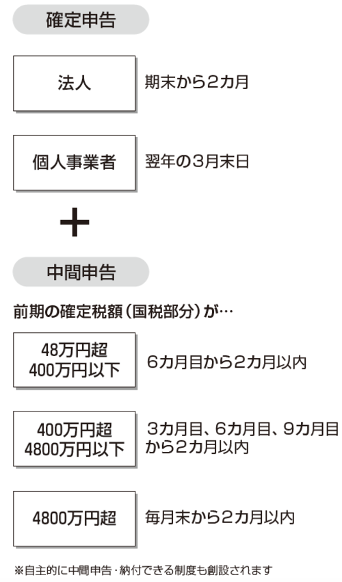 税額が48万円を超えると、翌期は「中間申告」が必要