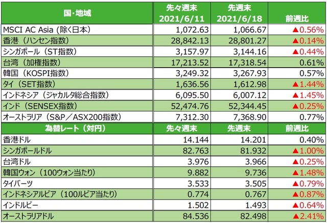 (注5)前週比は2021年6月11日から2021年6月18日まで、前月末比は2021年5月31日から2021年6月18日まで、前年末比は2020年末から2021年6月18日まで。