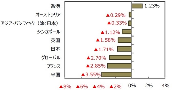 グローバル・リートは、欧米株の下落などを受けて2.70%下落しました。