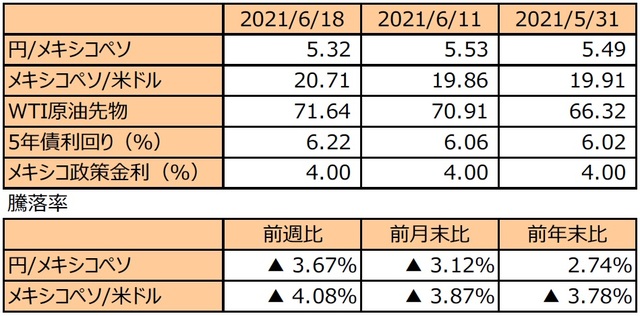 (注2)円/メキシコペソと円/米ドルの単位は円、メキシコペソ/米ドルの単位はメキシコペソ。