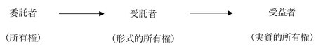 信託では、「委託者」が自分の財産を「受託者」に託します。そして、「受託者」は信託された財産を「受益者」のために管理・処分します。委託者が有していた財産は、形式的な名義は受託者に移りますが、実質的な利益は受益者が得ることになります。委託者にあった完全な所有権が、形式的所有権と実質的所有権に分かれ、受託者と受益者に帰属する。それが信託法によって保証された信託の仕組みです(図表1)。