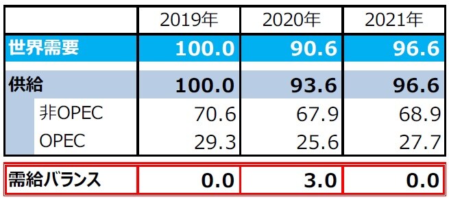 ただし、2021年のOPEC生産量は全体の需給が均衡するとの仮定のもとでの弊社算出値。
