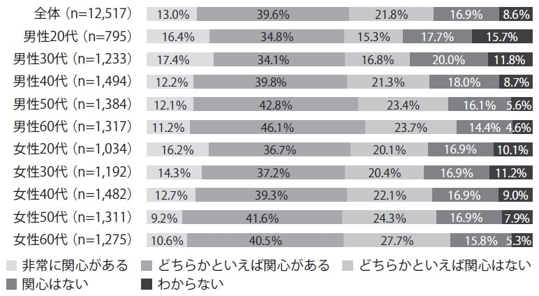 ただし、オンライン診療への関心は世代を問わず高まっています。同じMMD研究所の調査では、オンライン診療に対して「非常に関心がある」「どちらかといえば関心がある」と答えた人は、全世代で5割を超えています(図表5)。