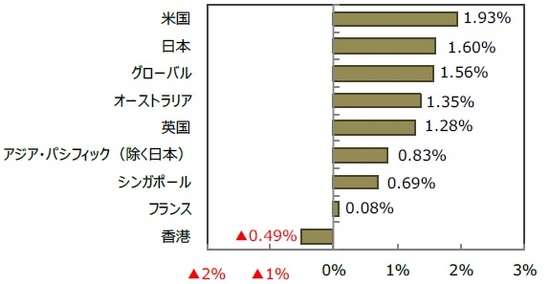 グローバル・リートは、欧米株の上昇などを受けて1.56%上昇しました。
