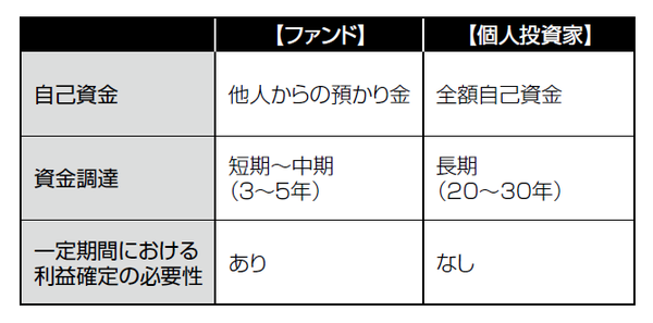 【図表 ファンドと個人投資家の違い】