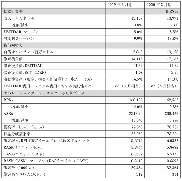 注2)Qatar航空は、キャパシティの稼働データ(RPK、搭乗率)を公表していないため、RPKは、OAGのデータベースから推計値を使用。RPKに依存するイールド、搭乗率といった値は推計として参照されたい。