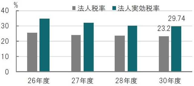 日本の法人実効税率は財務省によると足元29.74%で、OECDもこの数字を使用しています(図表1参照)。