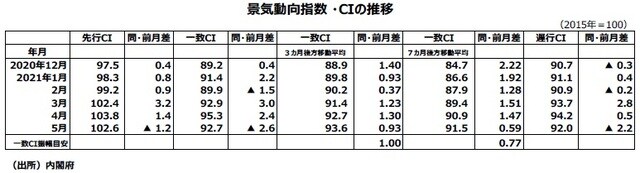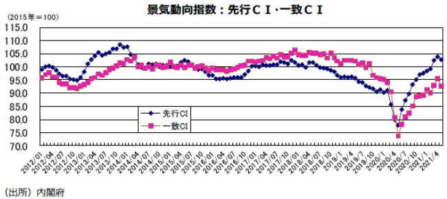 ※当レポートの閲覧に当たっては【ご注意】をご参照ください(見当たらない場合は関連記事『2021年5月分景気動向指数(速報値)』を参照)。