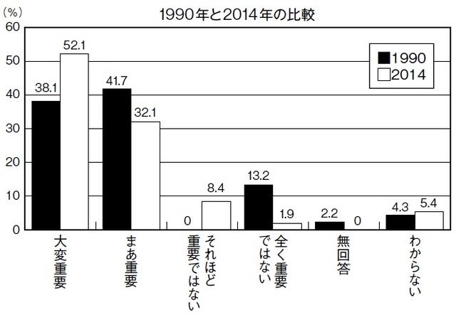 さらに面白いのが、1990年と2014年の日本の回答の比較です(図表3)。