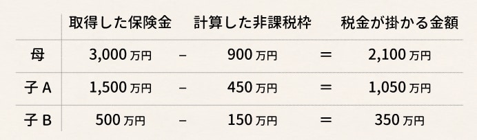 答えとしては、「保険金を受け取った相続人全員で非課税枠(500万円×法定相続人の数)を使う」ことになり、保険金を受け取った割合に応じて非課税枠が分配されます。実際にどのように非課税枠を使うことになるのかを見てみましょう。