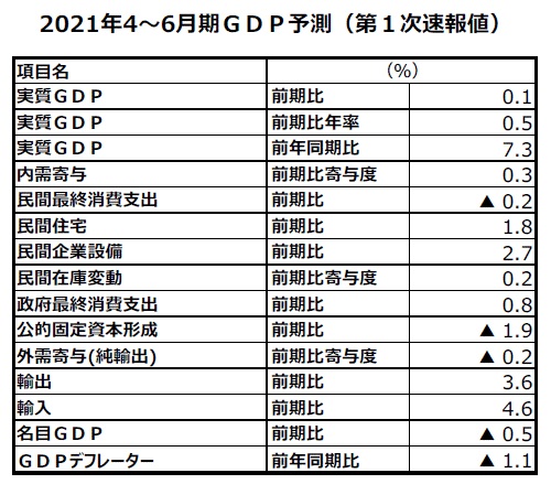 ※当レポートの閲覧に当たっては【ご注意】をご参照ください(見当たらない場合は関連記事『2021年4~6期実質GDP(第1次速報値)予測』を参照)。