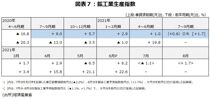 6月鉱工業生産指数・前月比+6.2%の上昇。7~9月期は5四半期連続・前期比上昇の見込み