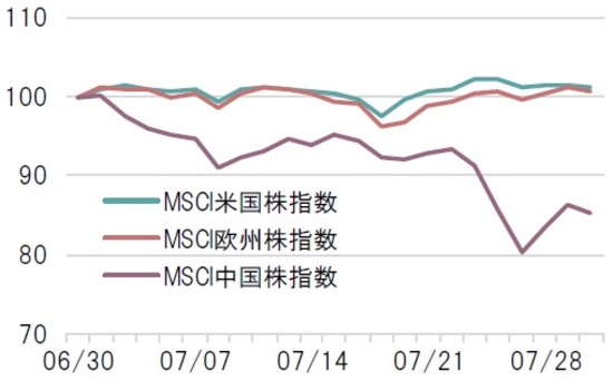7月の中国株式市場は、中国当局の一部業界における規制強化を受けて大きく下落する展開となった(図表1)。
