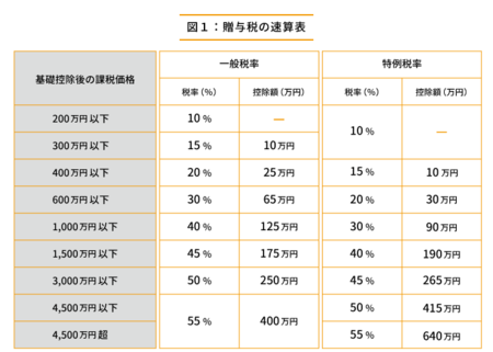 暦年課税による贈与税の額を計算するには、[図表1]の贈与税の速算表を使用します。