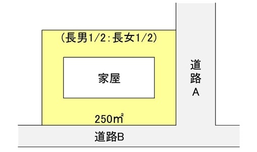 1/2ずつの共有持分に従い土地を分割するにあたって留意しなくてはならないのは、「面積を1/2ずつ分けるのではない」ということです。