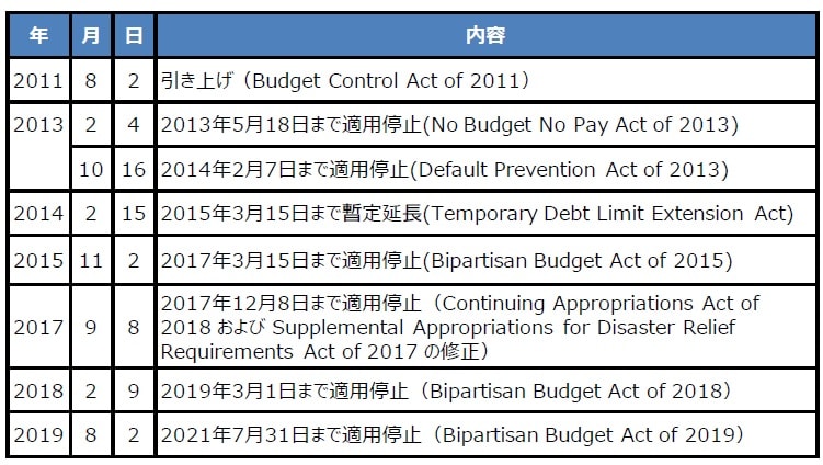 最近では、2019年8月2日に成立した超党派予算法(Bipartisan Budget Act of 2019)により、債務上限の適用が2021年7月31日まで停止されていました。適用停止期限が過ぎたため、債務上限は今月1日から復活しています。これを受けて、米財務省は現在、一部の公的年金基金への新たな資金拠出を制限するなどの特例措置を講じ、手元資金をやり繰りしています。