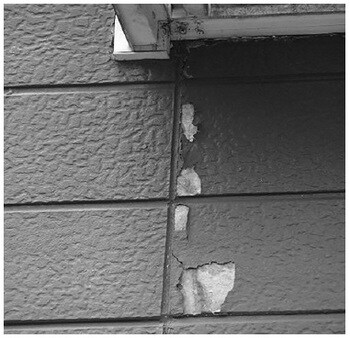 クラックとも呼ばれるひび割れ(写真1)は、塗装のみが劣化している場合もあれば、乾燥による外壁材の縮みや、地震などの衝撃によって引き起こされているものもあります。ひび割れの幅や深さで、深刻度をチェックします。