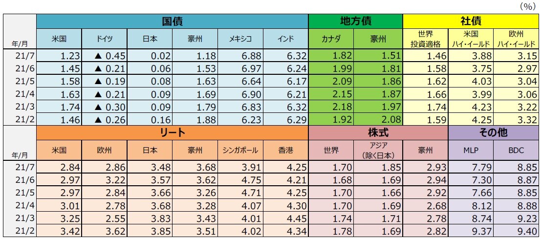 ※当レポートの閲覧に当たっては【ご注意】をご参照ください(見当たらない場合は関連記事『主要な資産の利回り比較(2021年7月)』を参照)。