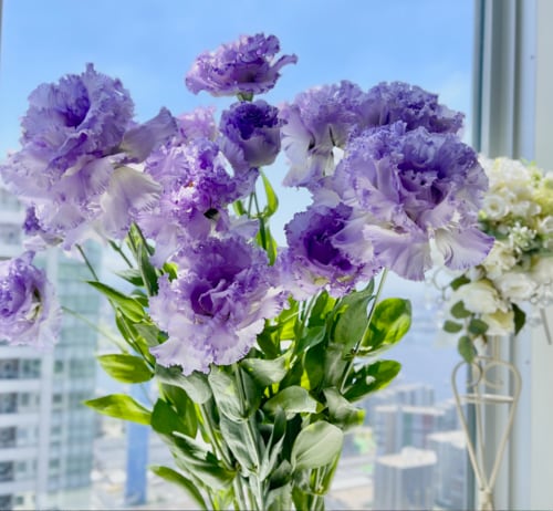 お手入れの際に少しずつ茎をカットしていけば、より長くお花を楽しめます。最後に短く花首だけになったトルコギキョウを、小さいガラスに浮かべるように入れても可愛いらしいです。